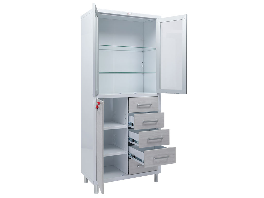 Предназначены для хранения медикаментов, инструментов, больничных документов, карточек пациентов в медицинских учреждениях и организациях.