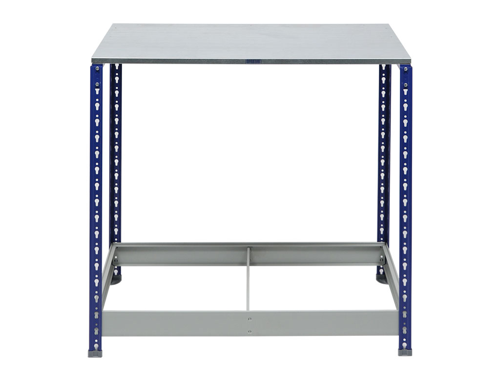 - Опоры изготовлены из стойки для стеллажа SB, профиль сечением 40х40 мм, металл толщиной 1.5, шаг перфорации 50 мм. Подпятники (MS Hard) в комплекте
