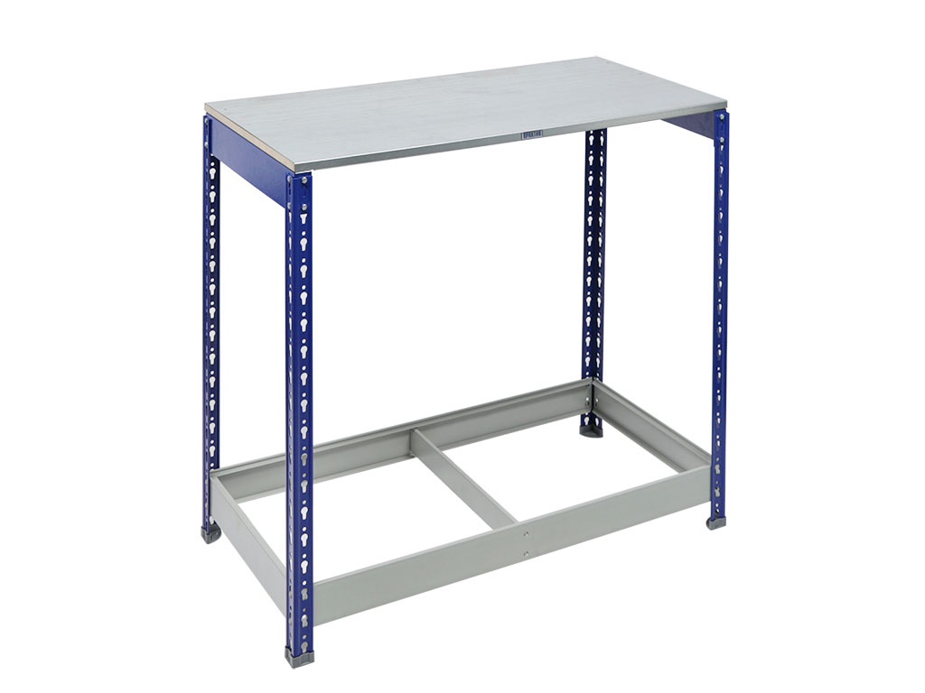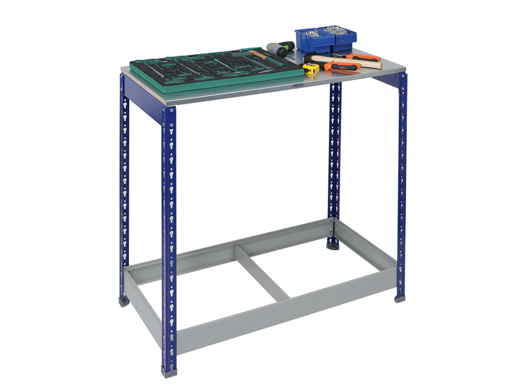 - Верстак оснащен ярусом, выполненным из стеллажных балок SB, толщиной 1.2 мм.