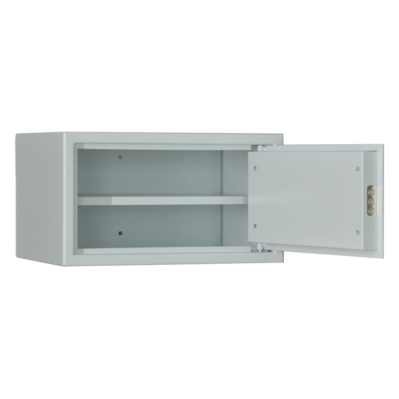 Сейф металлический одностворчатый (однодверный) ШМ предназначен для хранения бумажных документов. Корпус шкафа толщиной 1,2 мм, дверь толщиной 2 мм. На задней стенке корпуса расположены отверстия для крепления. В двери установлен ключевой сувальдный замок ЗАО «Про-Сам» г. Рязань или аналогичный замок другого производителя.